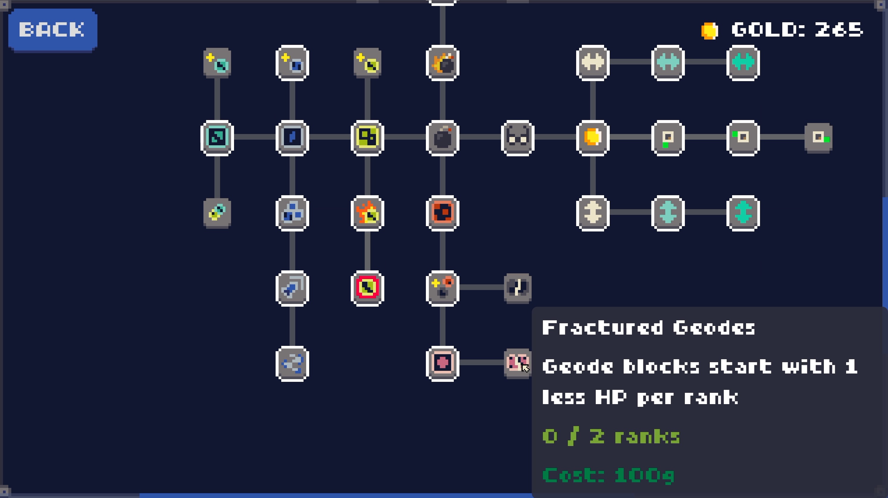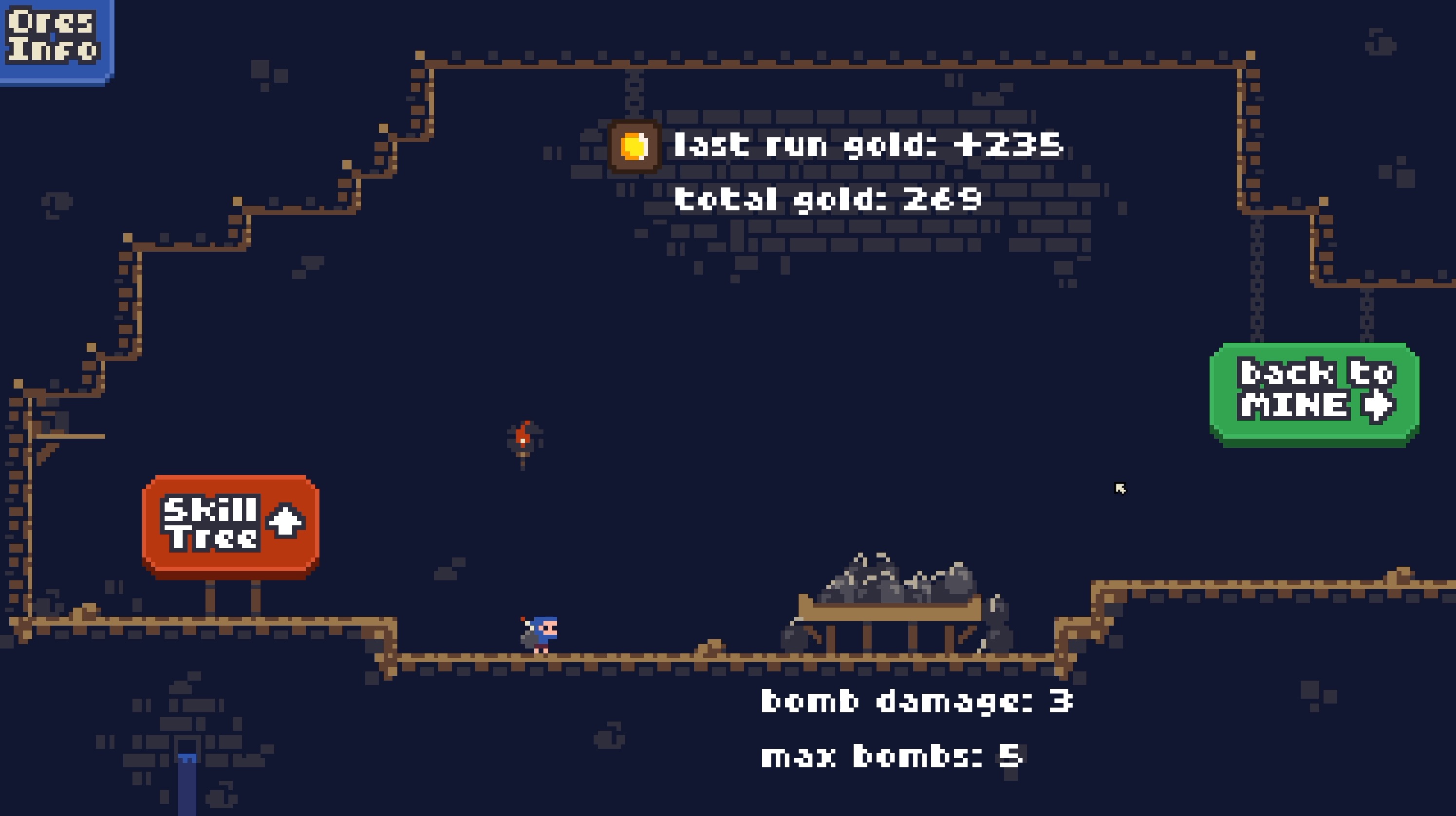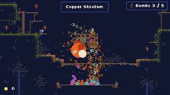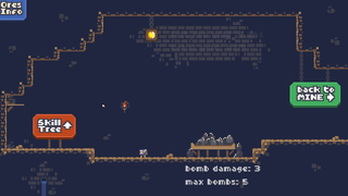 I think I maxed out the current version of the game. Very fun! Although I will say I started by focusing on bomb upgrades and I ended most mining rounds with excess bombs. It's kind of boring to have to just throw them at nothing. Would be cool to just skip bombs when there are no rocks left! Or get a bonus for excess bombs. Good game!