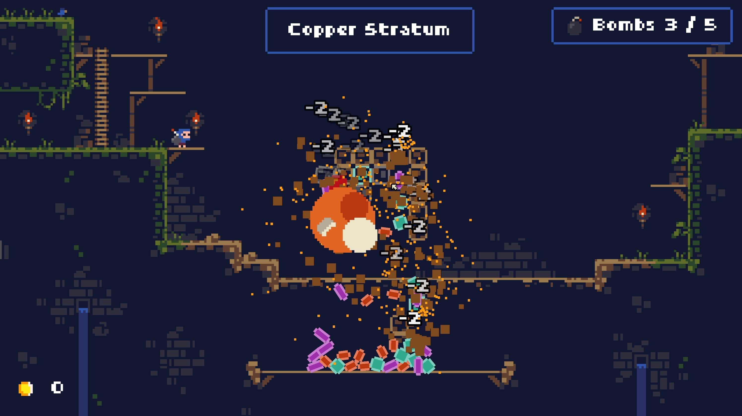 There are many different blocks and ores in the game, each one having a unique effect, such as Sulfur exploding on destruction, damaging nearby tiles.
