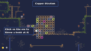 This is an incremental clicker with active gameplay: click to throw your bombs at blocks and ores, experience chain reactions between different ores, and move your cursor to pick up the loot.